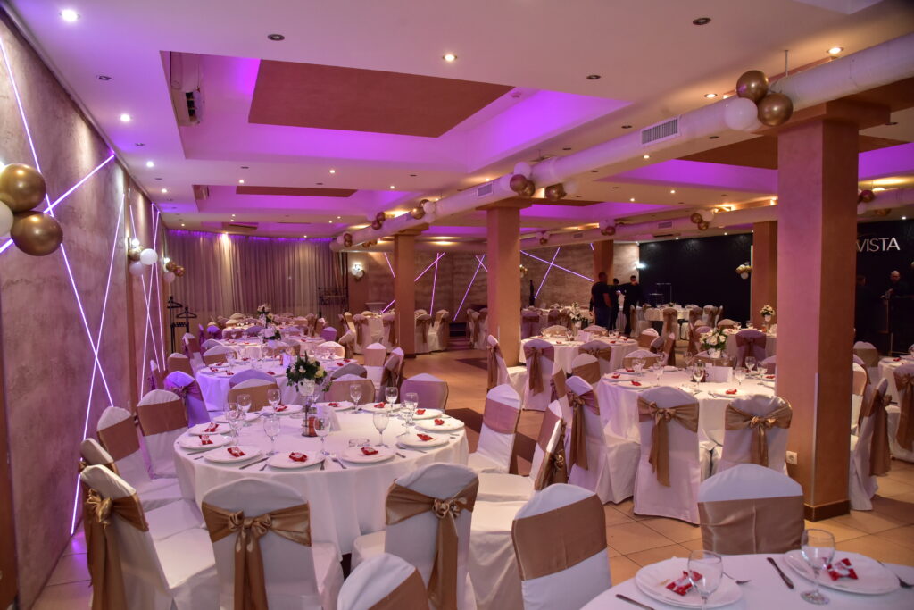 Naša moderno opremljena sala za proslave u Beogradu osmišljena je tako da se savršeno uklopi u sve vrste događaja – od venčanja, krštenja, rođendana, jubileja do porodičnih okupljanja.
